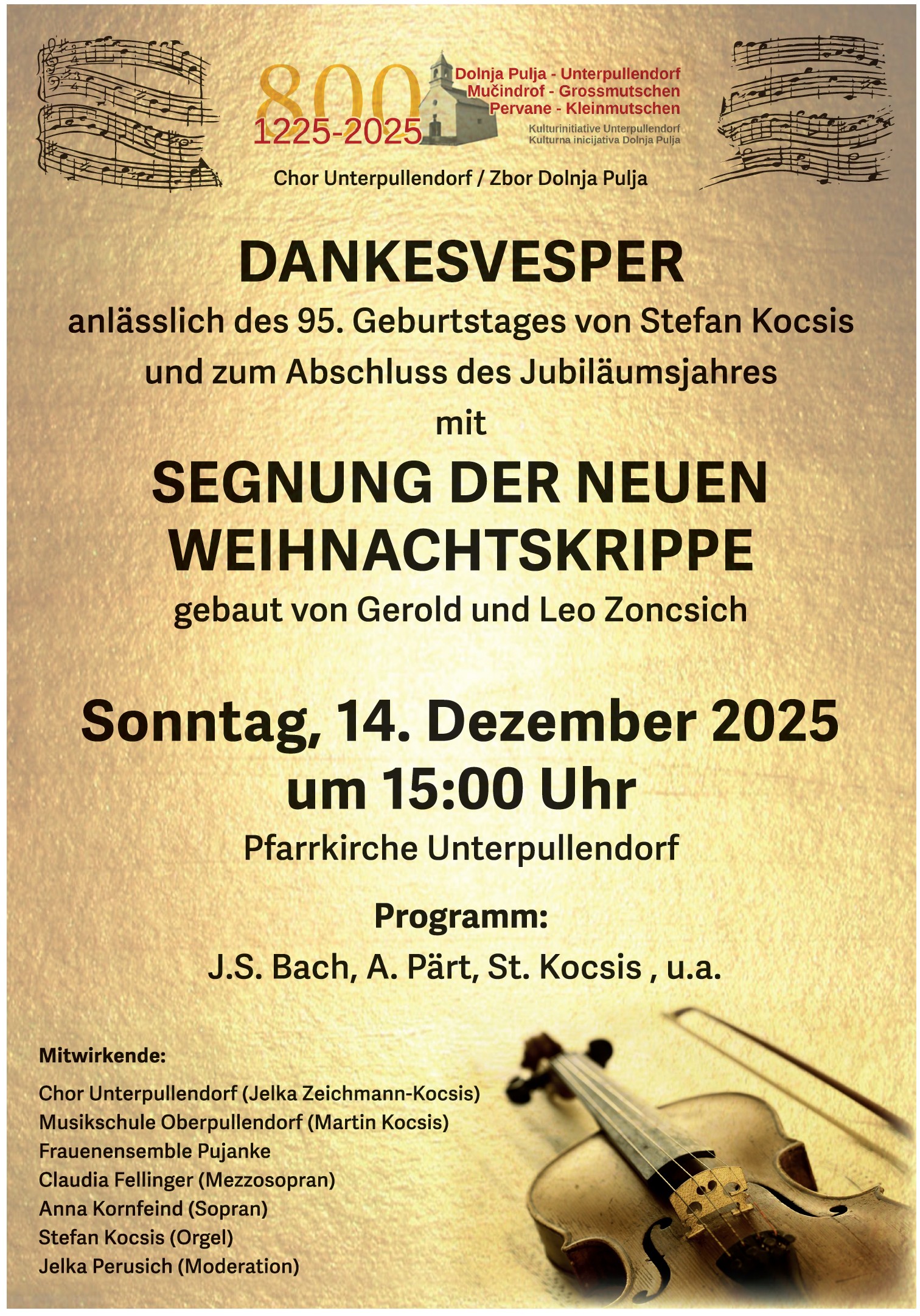 Die Ortsteile Unterpullendorf, Großmutschen und Kleinmutschen feiern 2025 ihre erstmalige urkundliche Erwähnung, also ihr 800-jähriges Bestehen. Die Gemeinde, alle Vereine des Ortes und unser Dorfgasthaus haben gemeinsam eine Gesamtplanung des Jubiläumsjahres vorgenommen und einen Verein unter dem Namen „Kulturinitiative Unterpullendorf/Dolnja Pulja“ gegründet.